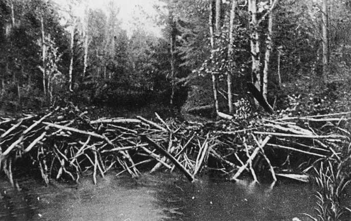Бобровая плотина на реке Таты-Панден-Яган (правый приток Малой Сосьвы, конец 30-х гг).